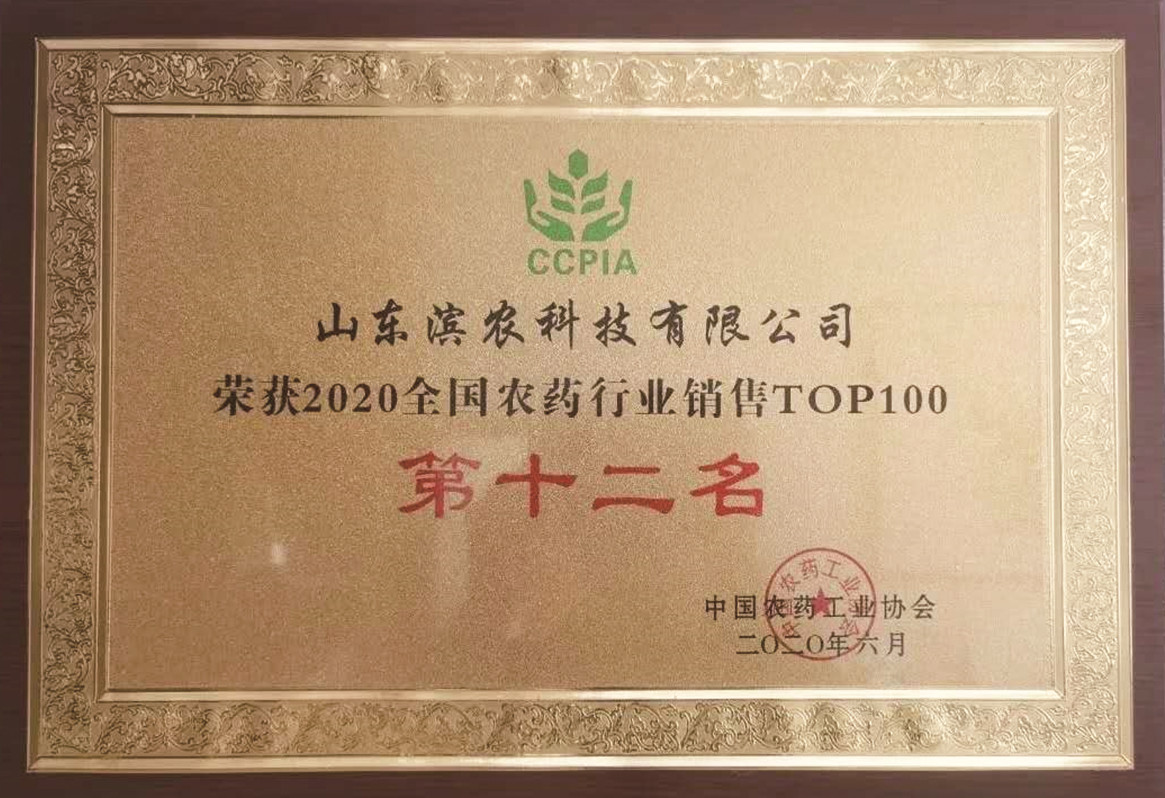 ■2020-06-06 濱農科技榮獲“2020全國農藥行業銷售TOP100”第十二名