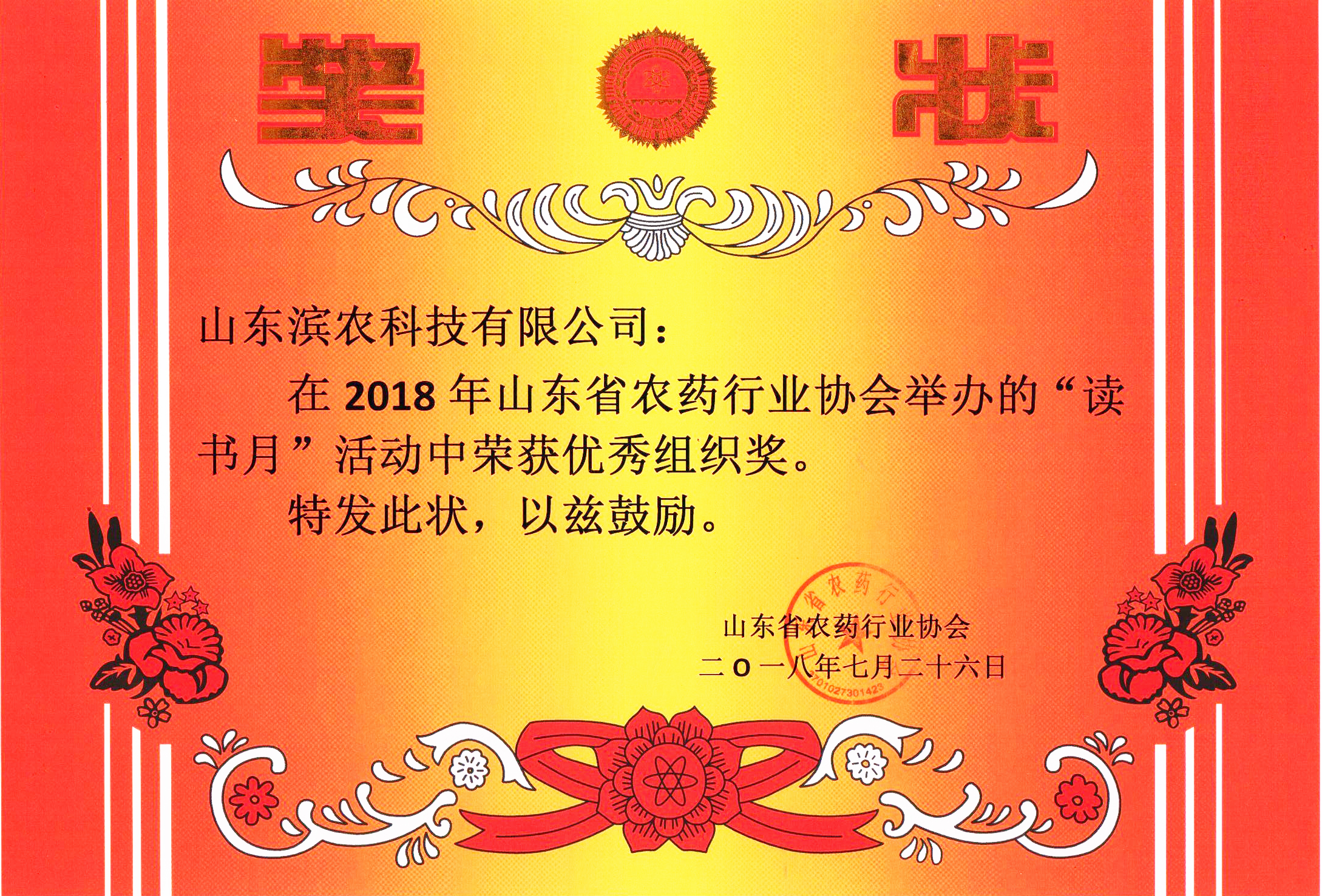 ■2018-06-03 我公司榮獲山東省農藥行業協會 “讀書月”活動優秀組織獎