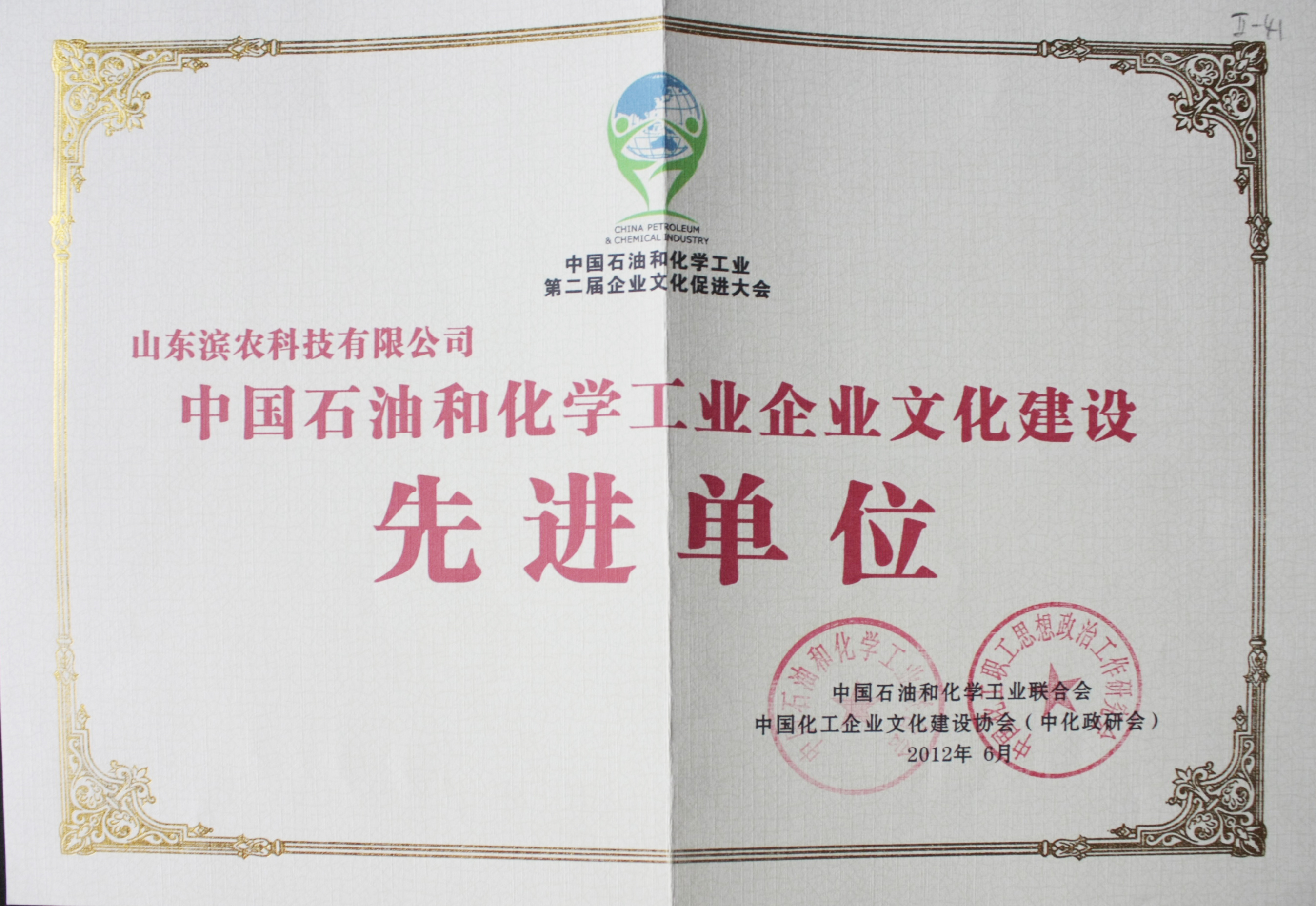 ■2012-06-26 我公司榮獲“中國石油和化學工業文化建設先進單位”稱號