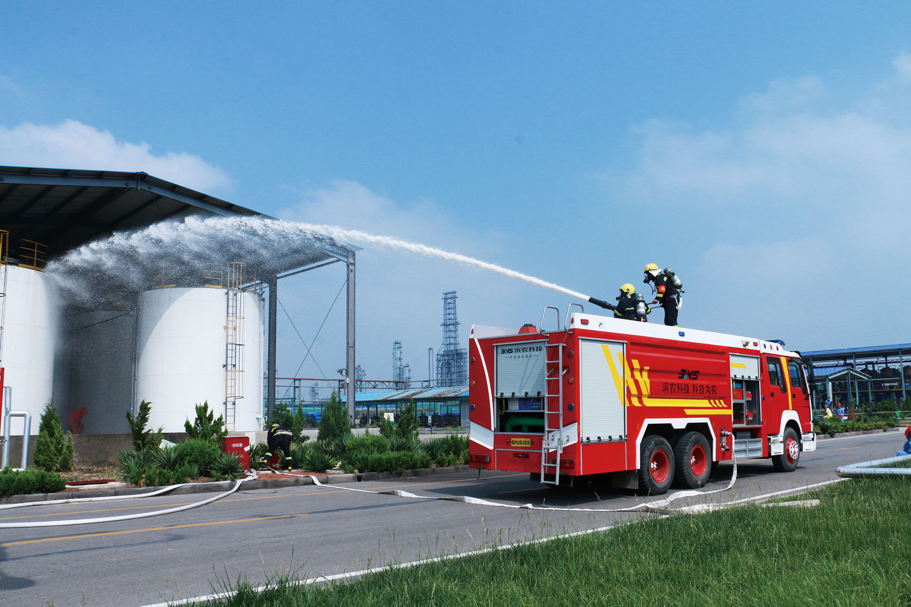 綜合應急救援演練:突發事故處置得當發布時間:2018-07-07 16:146月15日上午,我公司在原料罐區進行了安全、環境事故綜合預案應急演練,濱州工業園區管委會副主任張文杰、應急救援中心主任司志明、經發局副局長李俊善,我公司總經理張茂貴,副總經理侯立國、郭安勇,總工徐家俊、總經理助理張樂樂、副總經理助理趙福廷及部分車間中層、員工近150人參加了此次演練。 我公司安全總監王艷彬擔任現場總指揮,強調了綜合演練的重要性,要求各車間要切實提高員工自身應急逃生能力和對車間突發事故的應急處置能力。此次綜合應急演練主要包括MEA泄漏火災初期應急處置、車間應急預案響應、火災事故失控應急預案升級啟動響應、專職消防隊現場救援、現場及附近人員撤離、中毒受傷人員救治、現場環境污染應急及監測、現場洗消處置及搶險搶修堵漏等環節,演練過程中各應急小組動作迅速、處置措施正確。演練結束后,張總給予肯定并要求在今后的安全管理上我們要不定時、不設場景、不設預案,經常性的搞突襲式演練,通過實戰化演練來提高全體人員面對突發事件的應急處置能力,以最大限度減少人員傷亡和財產損失;同時,對演練過程中出現的問題,要及時總結經驗教訓,及時修改預案,對預案的可行性和可操作性作出實事求是的評估。 本次應急預案演練險情真實,處置措施得當,從火情發生到疏散解救、撲滅火災、及時、有效,保障了人身安全,避免了財產損失;真正做到了分工明確,職責到人,在火情發生的第一時刻,疏散搶救不慌亂,后勤保障準確到位,搶險救災及時、安全。