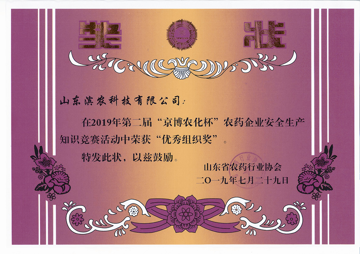 我公司榮獲第二屆“京博農化杯”農藥企業安全生產知識競賽“優秀組織獎”發布時間:2019-09-05 14:19本報訊 6月,全省企業“安全生產月”活動期間,山東省農藥行業協會開展了第二屆“京博農化杯”農藥企業安全生產知識競賽,我公司安全部積極組織各生產車間共610人參加了競賽。此次競賽共有42家單位5085人參加,經競賽組委會閱卷、評審,共8家單位獲優秀組織獎,我公司榮膺榜首。大賽還設一等獎5名、二等獎6名、三等獎20名、鼓勵獎67名。我公司制劑一車間段福財榮獲一等獎,水處理車間員工耿全順榮獲三等獎,合成一車間員工劉艷輝、張向東,合成二車間李洪亮,合成四車間邱學軍,合成八車間韓偉華,制劑二車間張紅艷,動力車間蘇延美共7名員工榮獲鼓勵獎。 此次競賽深入宣傳普及了安全知識,提供了職工遵章守紀的自覺性,強化了基層員工的安全意識,有助于牢固樹立全員安全發展理念,以防范化解重大風險、及時消除安全隱患、有效遏制生產安全事故。