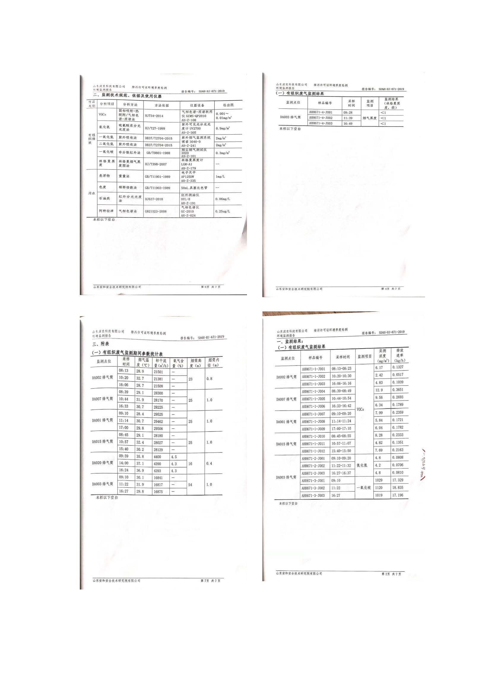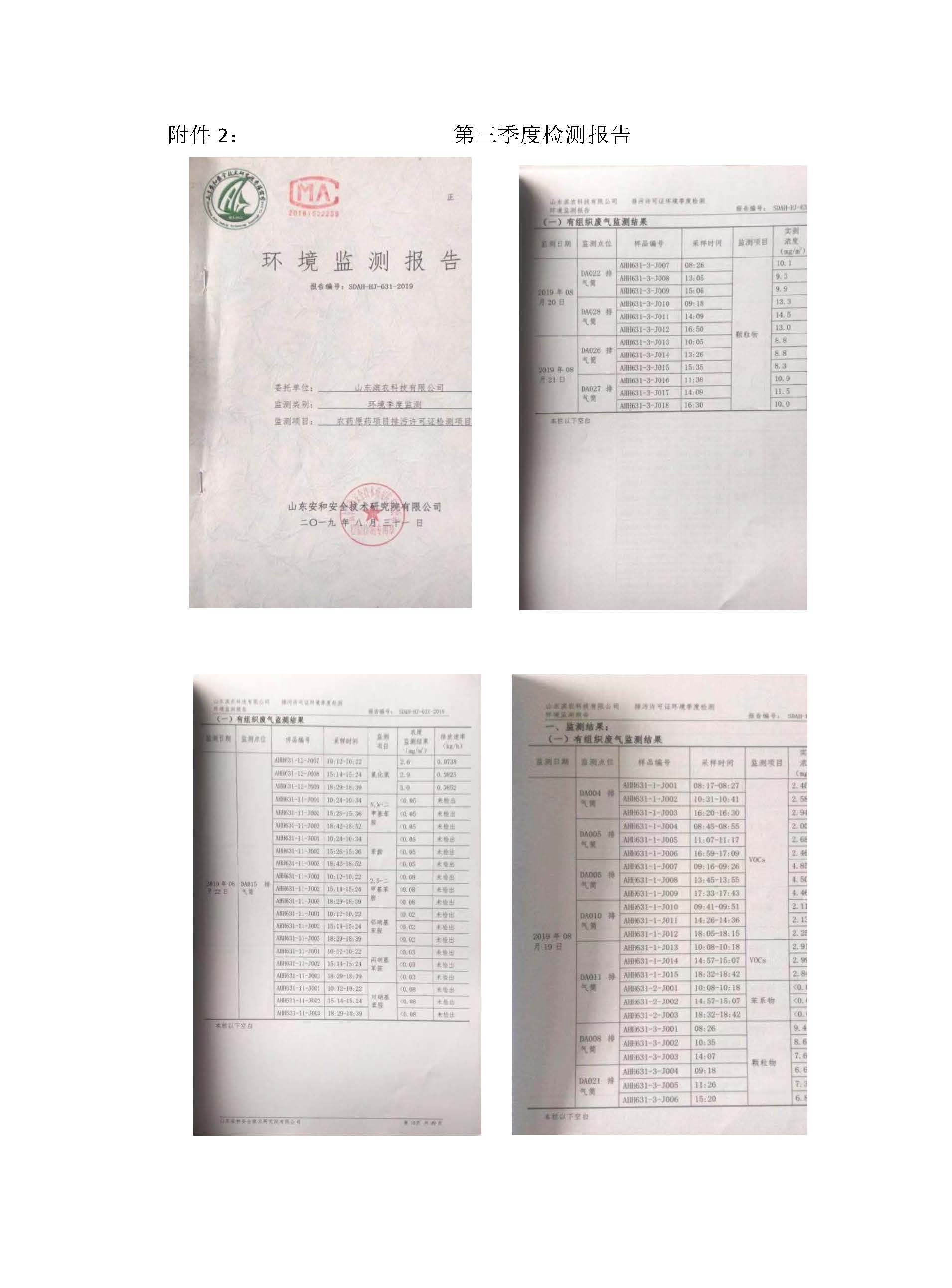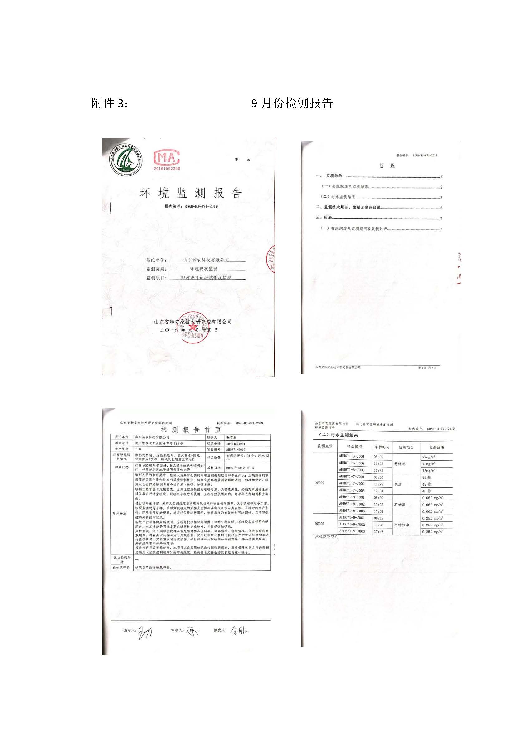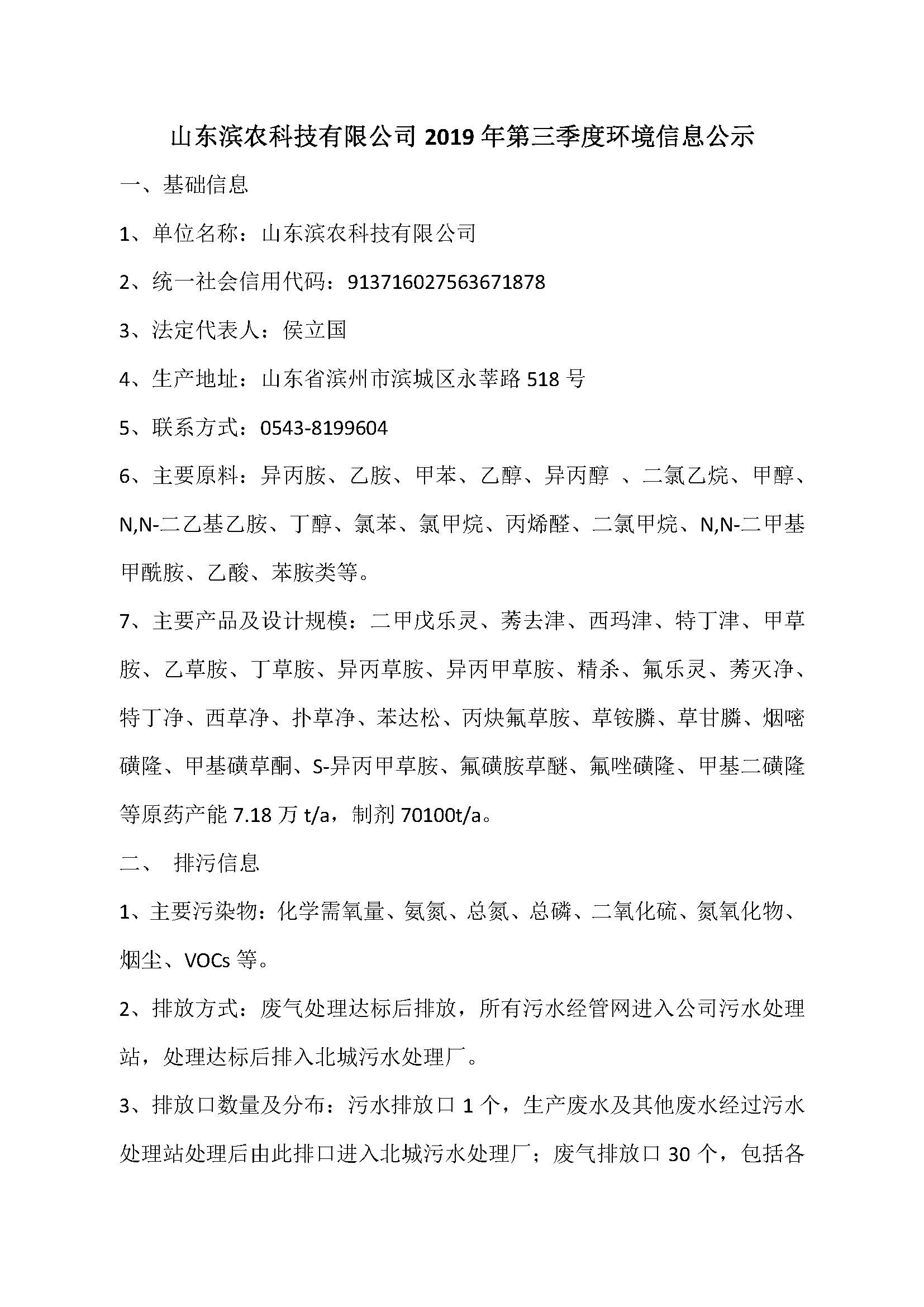 山東濱農科技有限公司2019年第三季度環境信息公示
