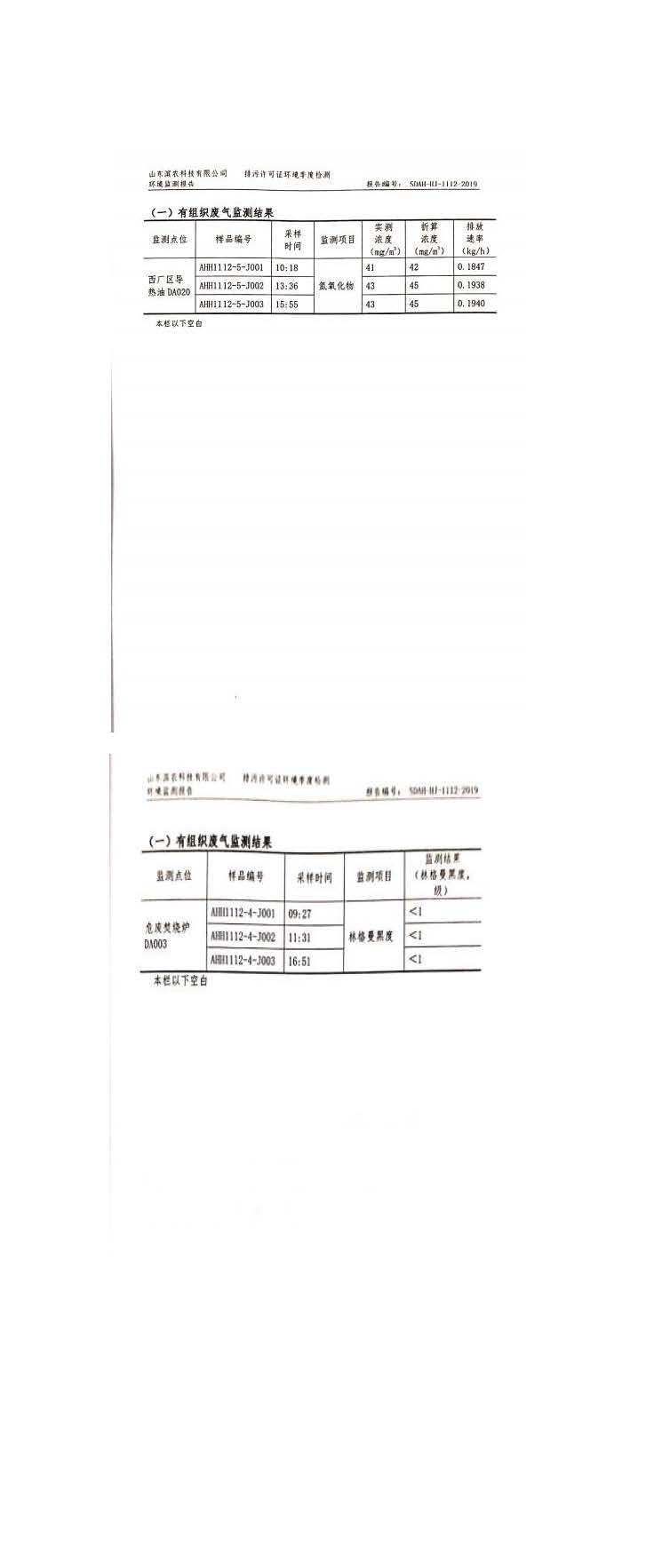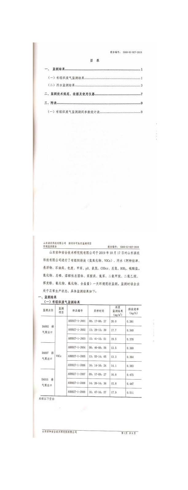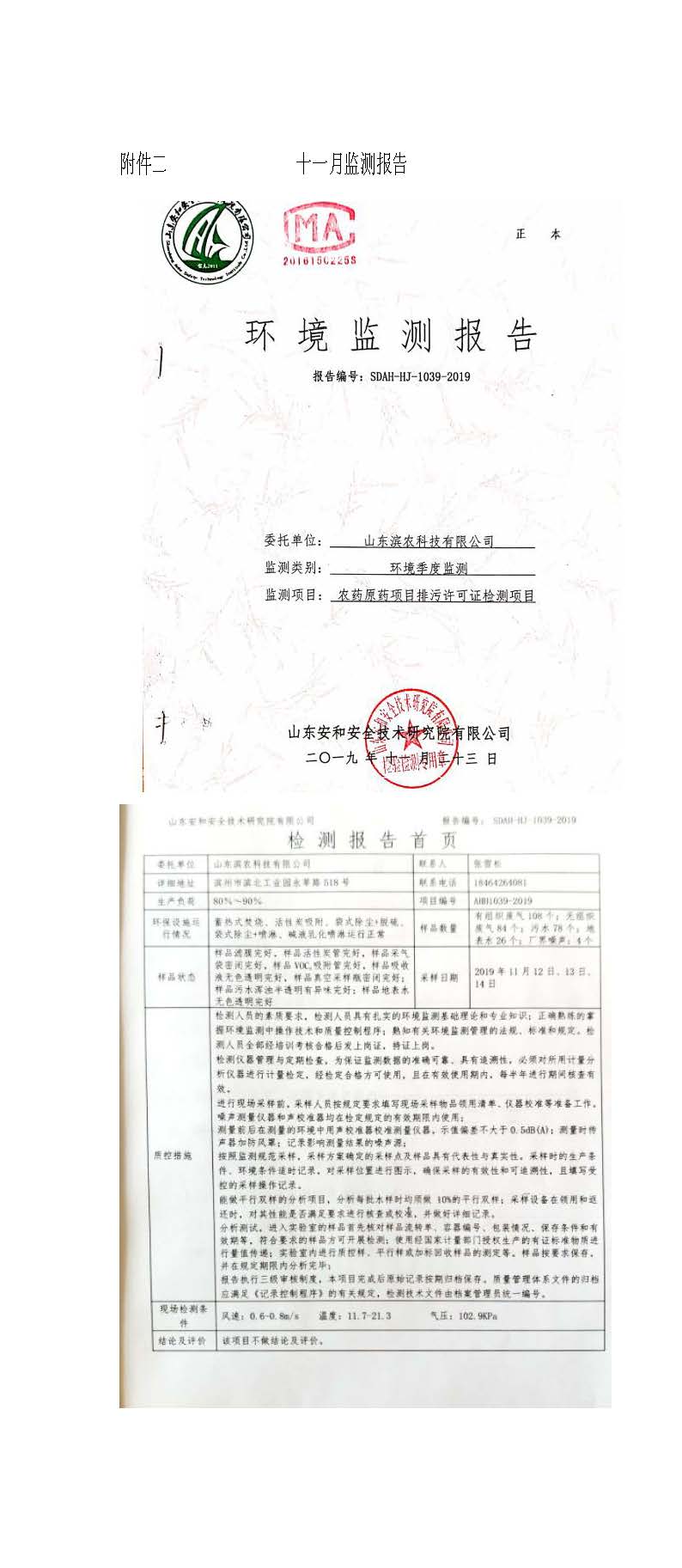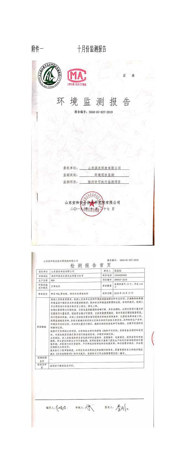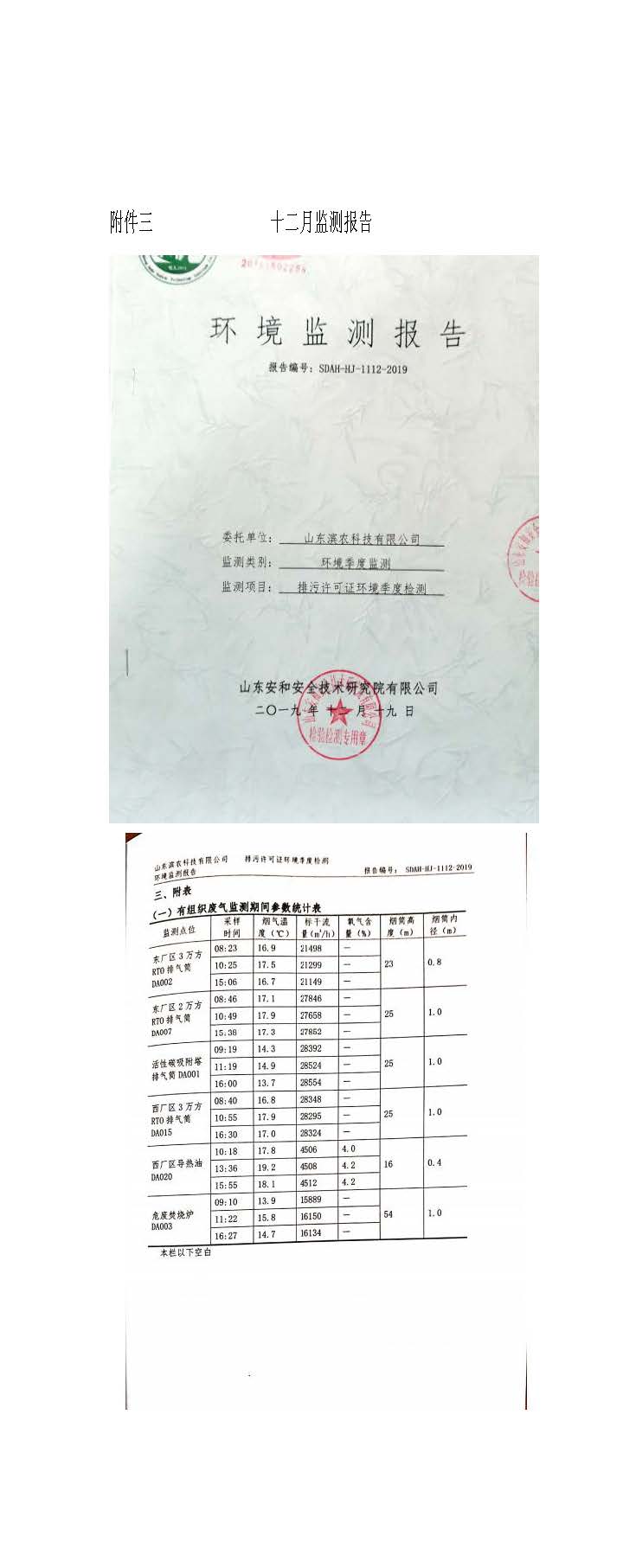 山東濱農科技有限公司2019 年第四季度環境信息公示