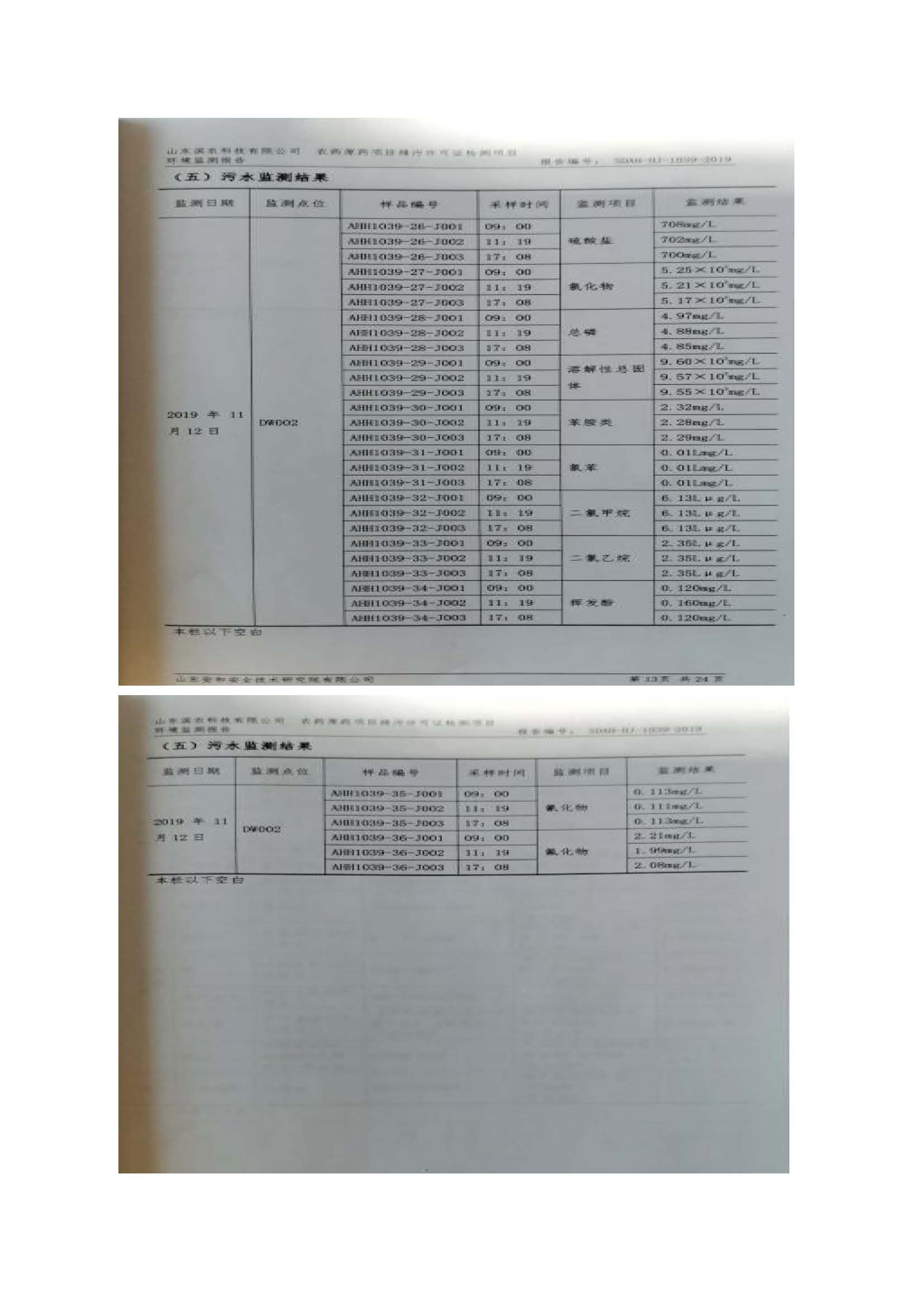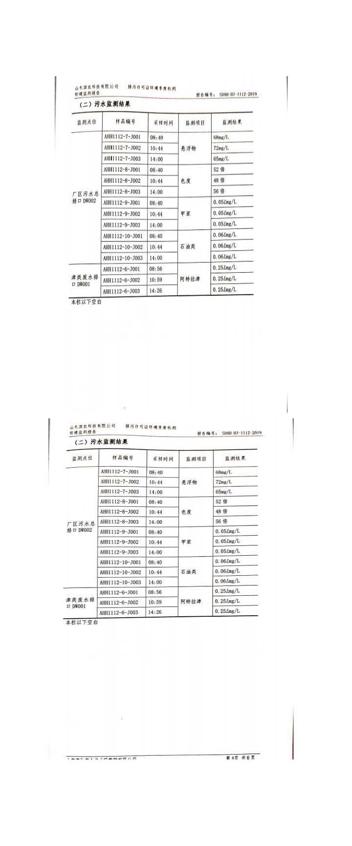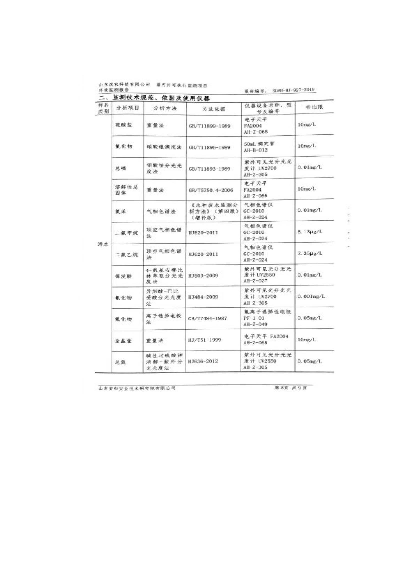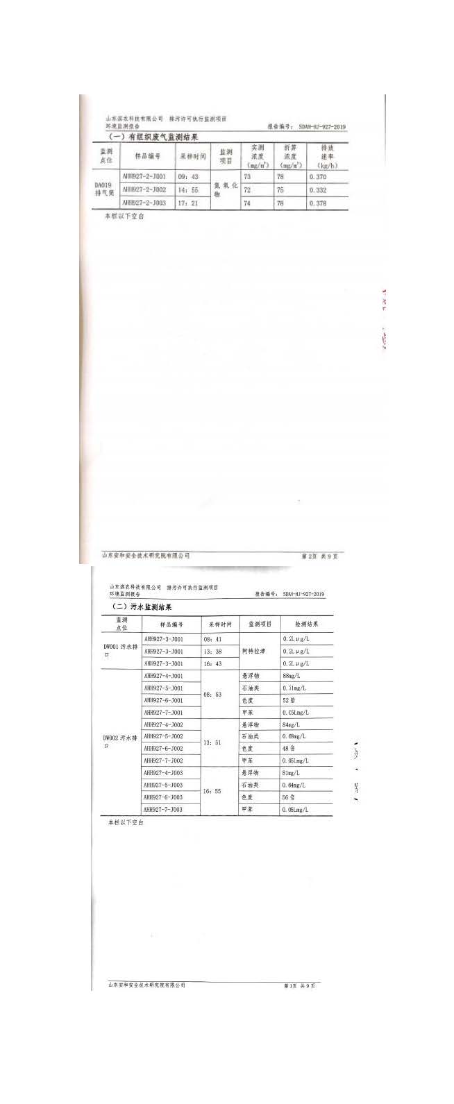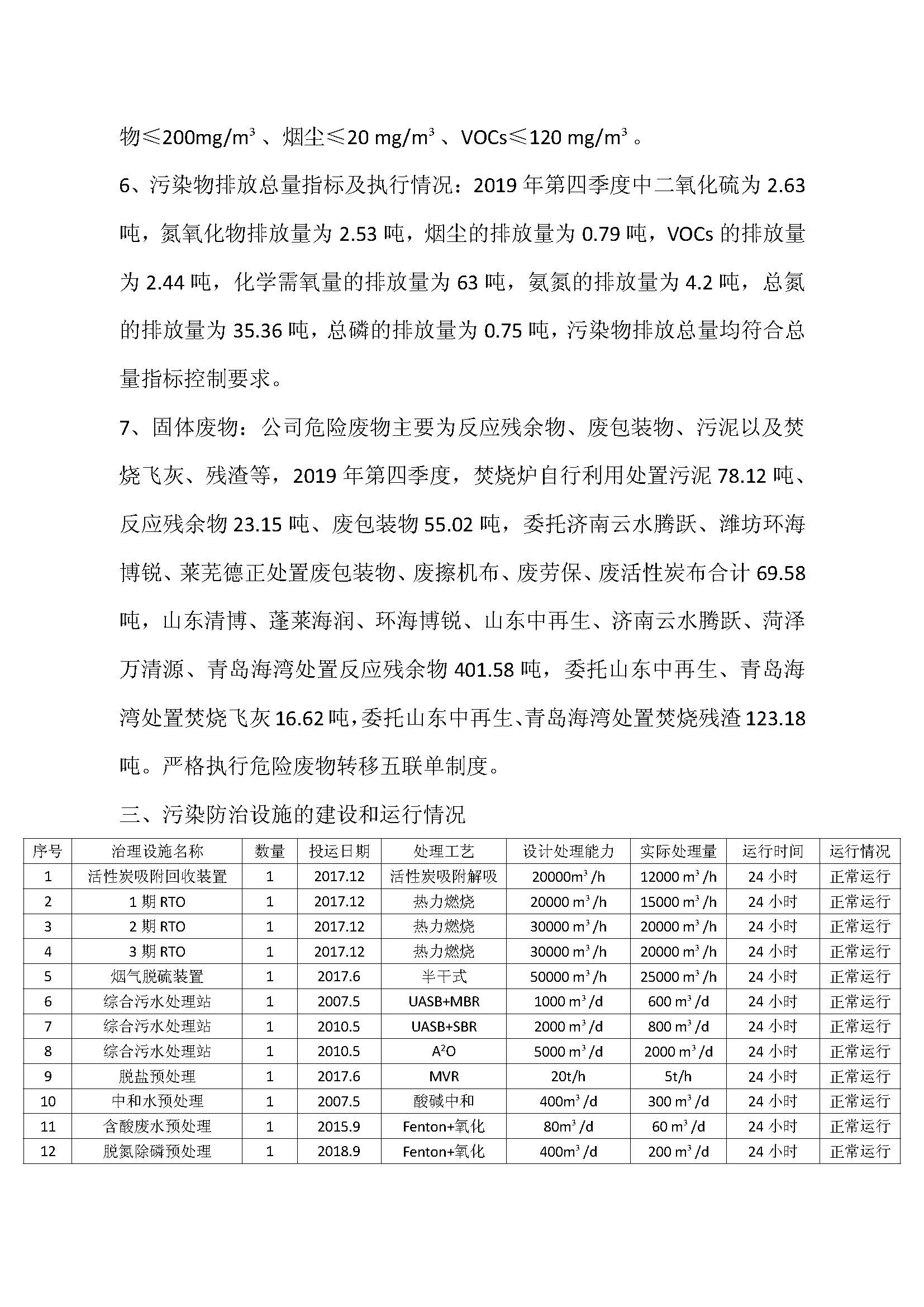 山東濱農科技有限公司2019 年第四季度環境信息公示
