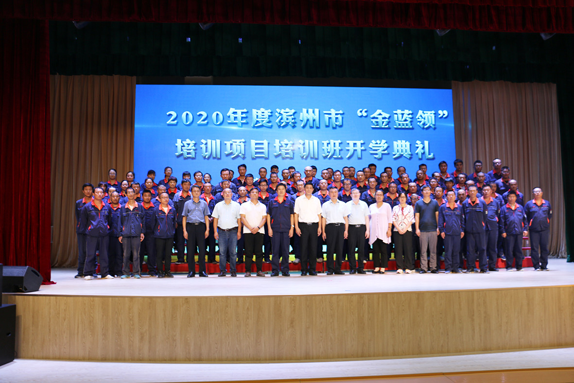 8月21日上午,2020年濱州市“金藍領”培訓項目濱農科技第一期培訓班開學典禮在國昌實驗學校報告廳舉行。濱州市技術學院黨委書記王明柱,濱州市人力資源和社會保障局黨組成員、副局長顏波,濱城區人力資源和社會保障局黨組書記、局長張惠斌,濱州市技術學院副院長李德軍,我公司總經理張茂貴、人力資源部主任王淘、濱農科技金藍領培訓班學員及技術學院教師代表參加了活動。
