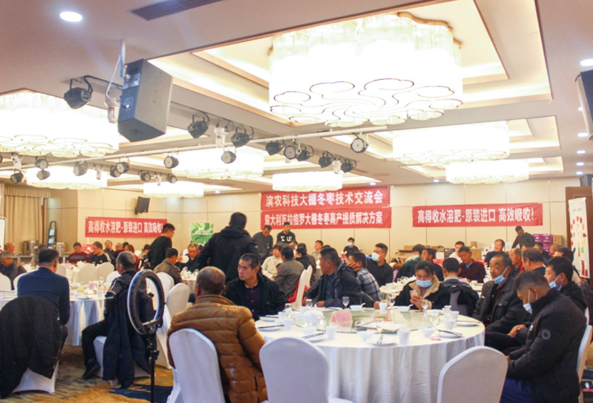 12月15日,我公司為答謝廣大新老客戶信賴,聯合意大利品牌“瓦拉格羅”在沾化區舉行了“濱農科技大棚技術交流會暨2022年訂貨會”,沾化區大棚種植戶、直營店經銷商、棗農70余人參會,濱州市沾化區沾化冬棗技術專家組首席專家、高級農藝師李福友老師,意大利瓦拉格羅股份有限公司山東區技術經理孫浩,我公司新零售事業部副經理蔡瑞孝及沾化直銷區各業務經理參會。