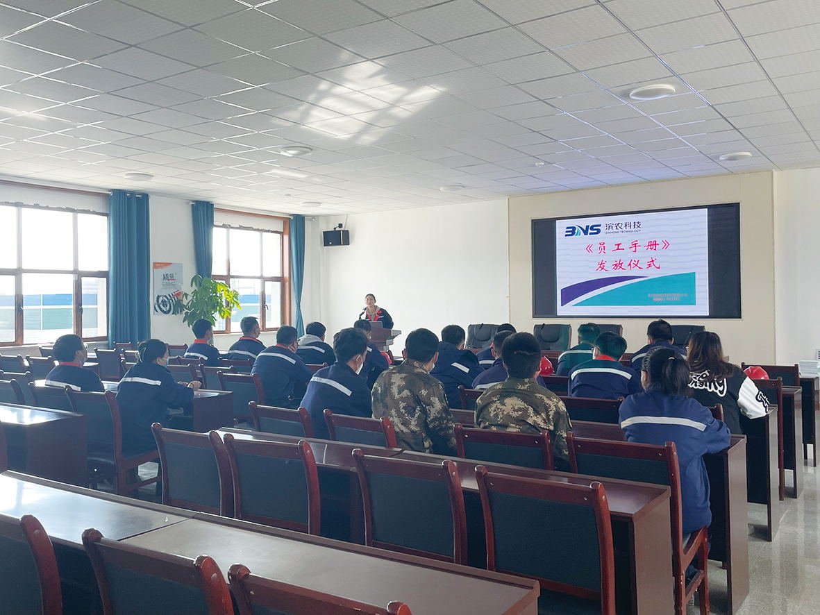 繼濱農科技總部首版《員工手冊》發行并組織開展全員文化測試線上答題活動后,11月7日,甘肅濱農科技有限公司在三樓會議室組織進行了《員工手冊》發放儀式,各部門、車間30余名代表參加了本次儀式。儀式上,行政管理部安婕就員工手冊發放標準及管理辦法進行了宣讀,并要求各部門、車間代表傳達至每一位員工,本次員工手冊共發放635本,全體員工人手一本。