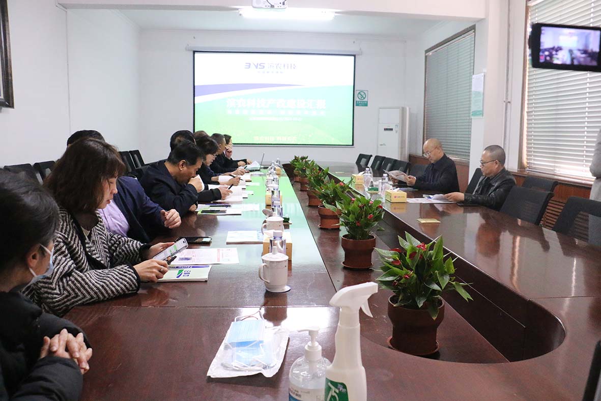 戚主席向調研組一行詳細介紹了集團公司產業布局、濱農科技發展主線,并著重就濱農科技產改實踐做了匯報。近年來,公司堅持文化引領,積極踐行企業公民之責;完善晉職晉薪機制,明確員工成長路徑;創設濱農國昌云大學,多措并舉選育用留,打造人才梯隊;以精益改善為抓手,驅動全員創新;依托集團教育、康養、生態園等資源,給予員工全方位生活關懷,豐富福利菜單等。