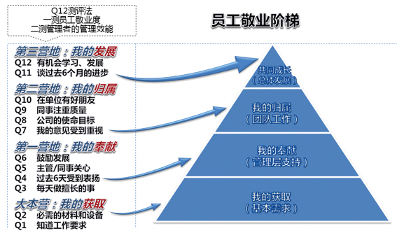 因此,對于管理者來說,以心酬提高員工敬業度責無旁貸。著名的“蓋洛普路徑”揭示了員工敬業度驅動企業業績提升的七步作用關系,而最關鍵的一步就是優秀主管能不能塑造出敬業的員工,并提供了提升員工滿意度的Q12測評法,不妨稱為“心酬十二法”,不妨成為管理者手中的常用工具,用以“攬鏡自照”,用以管理糾偏,用以驅動員工敬業度,用以提升企業績效。
