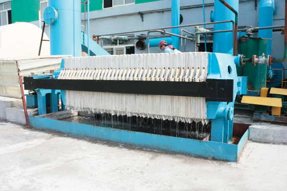 因合三車間津類廢水在排放過程中含有少量的生產(chǎn)物料,不僅造成了物料的浪費,還給后續(xù)的污水處理帶來了一定難度。為保證污水處理達(dá)標(biāo),提高資源利用率,合三車間決定在合三一線與合三二線污水池前重新加裝板框壓濾機,使廢水通過壓濾機的板框壓濾,濾清其中的物料。目前,經(jīng)過板框壓濾機處理,車間排出的污水已經(jīng)開始變清,雜質(zhì)大大減少,不僅在很大程度上降低了污水工段的處理難度,同時也有效回收了污水中的物料,減少物料的流失,提高了資源的利用率。