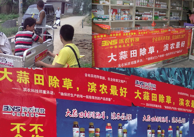 9月,推廣部的生力軍又開進了大蒜之鄉——金鄉,開始了新一年的大蒜田除草劑的推廣。炎炎烈日下,我們走街串巷打廣告貼宣傳,重點街道、搶眼位置,到處留下了我們的宣傳標語。一滴滴汗水流下,我們沒有一聲抱怨。