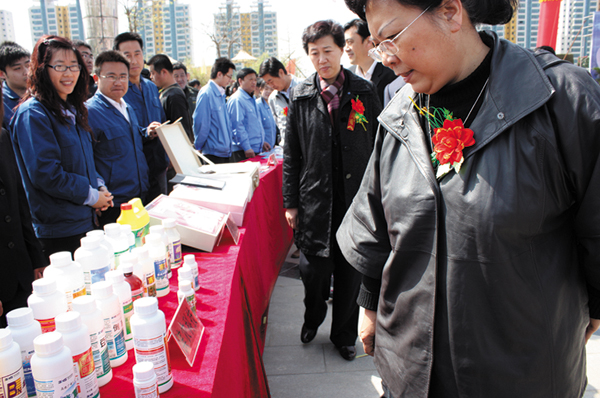 4月26日上午,第十個(gè)世界知識(shí)產(chǎn)權(quán)日大型宣傳咨詢活動(dòng)在濱州市市政文化廣場(chǎng)隆重舉行,同時(shí)我省首個(gè)省級(jí)知識(shí)產(chǎn)權(quán)維權(quán)援助中心——山東(濱州)知識(shí)產(chǎn)權(quán)維權(quán)援助中心和山東省知識(shí)產(chǎn)權(quán)信息平臺(tái)濱州市分平臺(tái)揭牌。本次宣傳咨詢活動(dòng)的主題是“創(chuàng)造·保護(hù)·發(fā)展”,我公司研究所派相關(guān)代表參加了此次活動(dòng),對(duì)公司的專利產(chǎn)品豆虎(25%苯·虎·精喹)以及濱農(nóng)二人轉(zhuǎn)、玉無草等30余種暢銷產(chǎn)品進(jìn)行了宣傳展示,引起與會(huì)人員的極大關(guān)注,省知識(shí)產(chǎn)權(quán)局局長李愛民、副局長劉鴻鋒、市委常委副市長孫承志專程到我公司展臺(tái)前駐足觀摩交流。